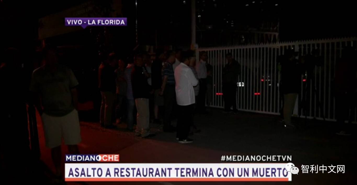 当晚11时40分,位于智利首都LA FLORIDA区Vicuna Mackenna 9911号,将要关门打烊的多宝饭店,里面还有一些客人没走,突然,闯进两名歹徒,直奔收款台抢钱,正在收款台的店老板罗先生本能地反抗并两手外推,没想到立遭歹徒向他连开三枪。罗先生不幸当场遇难。歹徒抢钱后迅速逃离现场。