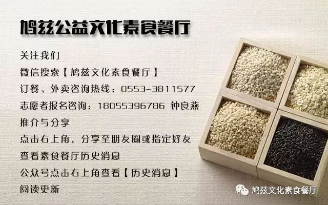 地址:芜湖市镜湖区北京西路10号鸠江饭店院内鸠兹公益文化素食餐厅