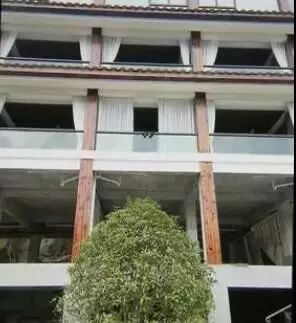 张先生告诉记者:“整体建筑是位于酒店围墙之外的,就是一栋在建的建筑,从外部进去,要通过一个类似于建筑工程施工现场,建筑下面是一个骨架,几根梁撑在上面,上面就是我的房间。”