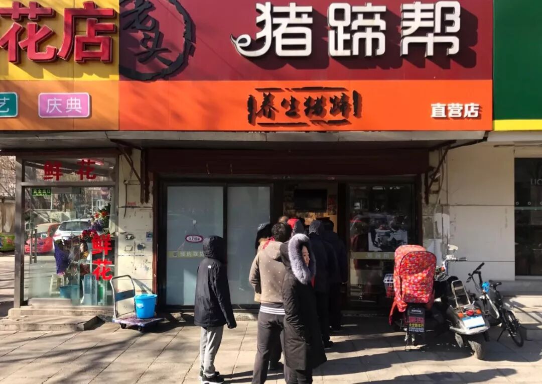 如今猪蹄帮的直营店有四家,两家店还是在五棵松附近,排队依旧。从1个多月前,猪蹄帮的规矩改成了每天10点半开卖(以前是12点),我是11点半到的,排队的人有一些,但是远没有刚开卖的时候排队人多(我身后的大妈说,以前12点开卖,排队的人能排出好几个拐弯去)。