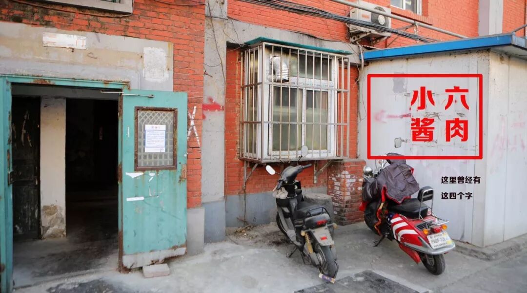 这是一家开在新街口老居民楼里的酱肉馆,要不是提前按照门牌地址查找,真得费点劲。到了二单元门口,能看到墙上有“小六酱肉”的标志,喷上又被涂抹,说不定这里面也有点风波。