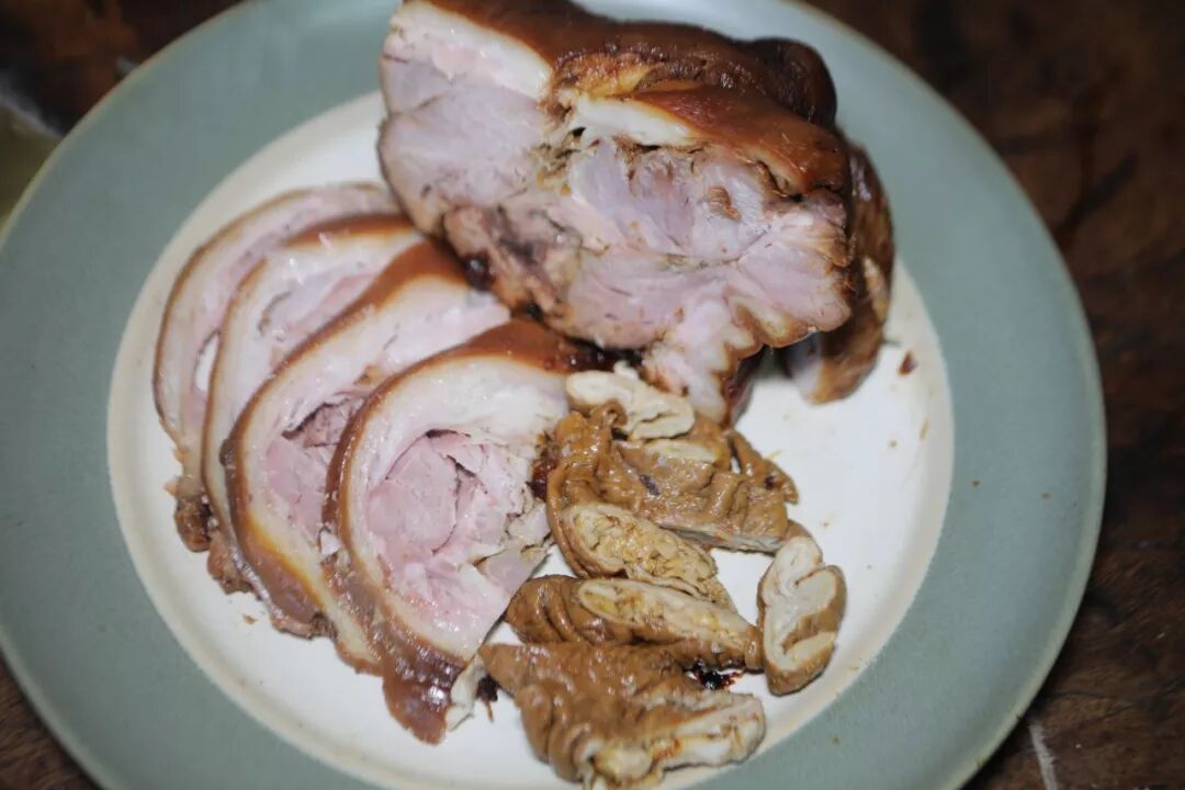 凉拌时可以切一些蒜末,加点醋,有人喜欢再点一两滴香油,这样凉拌吃法可以稍微缓解酱肉的油腻。