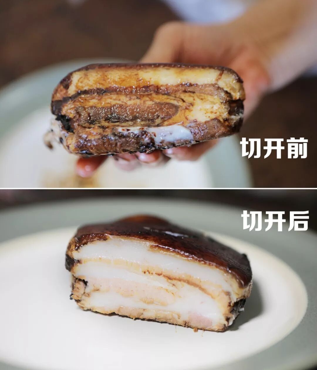 方肉用上好的五花肉制作,可以看到3层肥瘦相间的纹路。虽然看起来有点肥,但是肉香味很足,傅叔的独家配方让酱货们吃到最后,嘴里有一丝回甜。