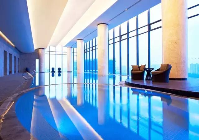 恒温标准游泳池,旁边还附有稍高温度的儿童池