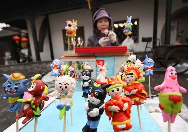 写春联+剪窗花、草编+龙凤字、糖画+捏面人