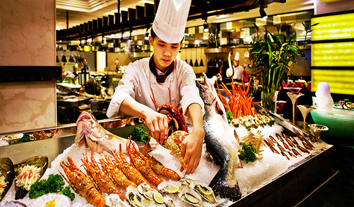 您可以在顶楼的星光汇旋转餐厅一边享用清凉饮品和便餐,一边欣赏城市的壮丽景色,度过轻松的下午时光。谭府餐厅供应经典皇家菜肴,大上海餐厅则供应上海特色美食。此外,霄云厅(自助餐厅)供应每日自助式早、午、晚餐。