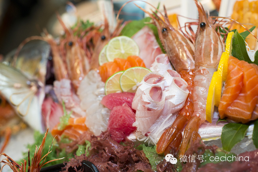 新鲜的寿司、口感细腻的刺身、精心挑选的上等海鲜; 硕大的沙拉台,随意选择各式风味沙拉; 花样翻新的热菜,每周更有来自意大利,德国,美国及亚洲国家不同主题的环球特色美食!