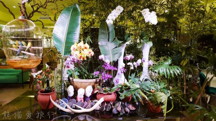 进入在之禾大堂,无时不刻不绿意盎然充满着勃勃生机,铺满花朵的壁纸、绿天鹅绒的沙发蝴蝶兰和竹林遍布其中、金丝鸟笼中鸟雀欢声笑语轻声嘀啾……无处不在的鸟语花香,扑面而来的自然气息让人立即忘却日常生活的种种烦恼,一旦步入酒店,便仿佛被运送到一个全然不同的美好世界。