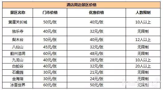 购买以上套餐中的任意一个,可享受以下景区优惠:需要到酒店的商务中心开介绍信