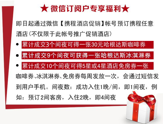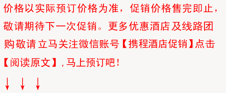 现在就密切关注【携程酒店促销】微信号,守株待兔刷到超值豪华酒店,来一场说走就走的旅行吧!