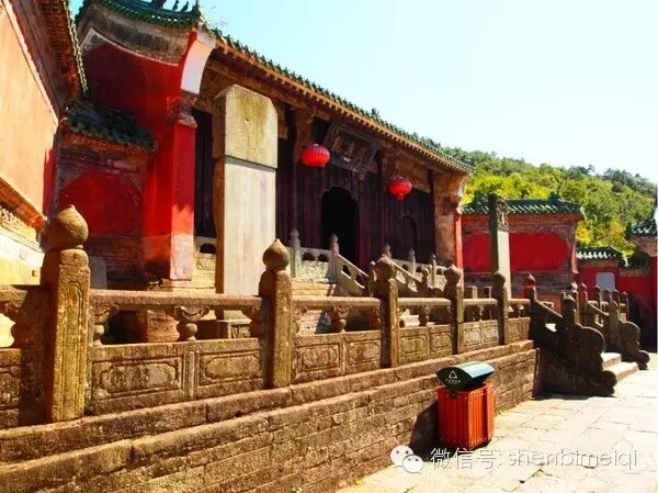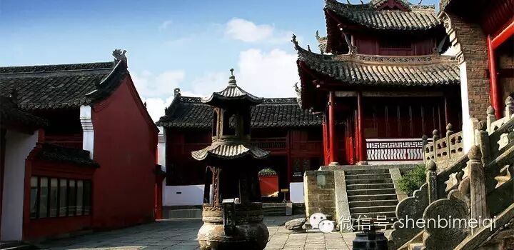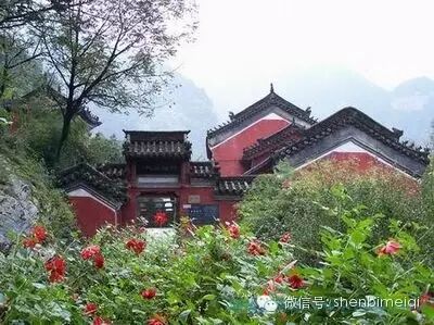 -----紫霄宫(用中餐)顺着山坡而筑的一片古建筑气势雄伟,远远望去威严肃穆,极具皇家道场的气派。后面的山峰便是展旗峰,前面对着香炉峰等五座山峰,右面是雷神洞,左边还有蓬莱第一峰,构成了二龙戏珠宝椅状的山势,可说风水绝佳,故有“云外清都”之誉。