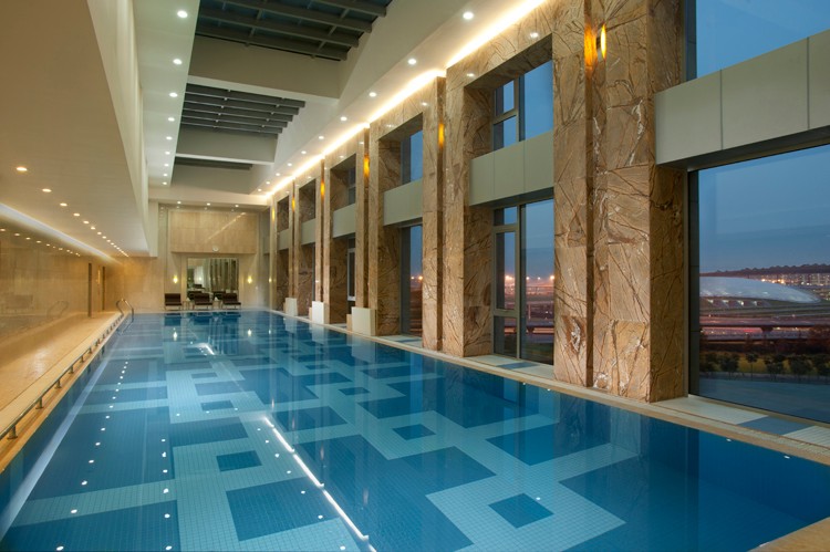 饭局之前,可以到6楼的游泳池泡一泡,同样可以看窗外降落的飞机。
