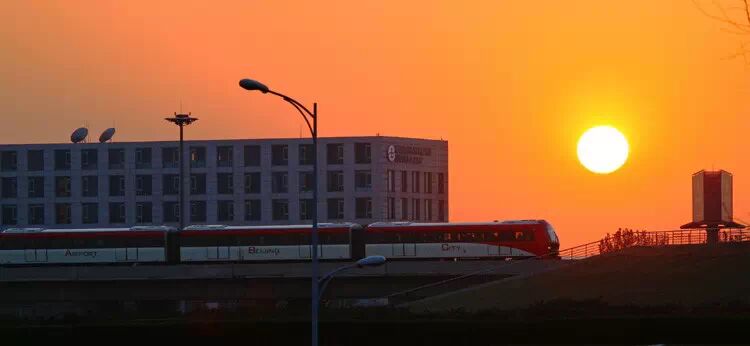 2013年11月,站在酒店门口,拍摄夕阳归来的航班。飞机正在首都机场2号跑道降落。