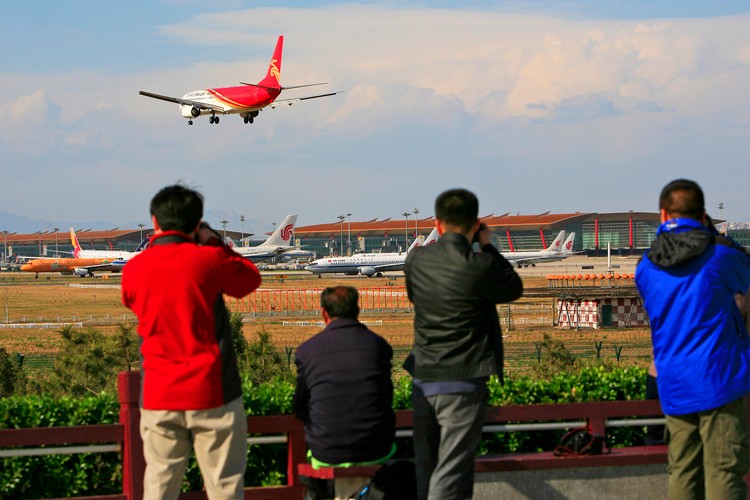 你看,这样的看飞机感觉,你觉得如何?背景里就是3号航站楼,2008年奥运时启用,当时是最大的单体航站楼。