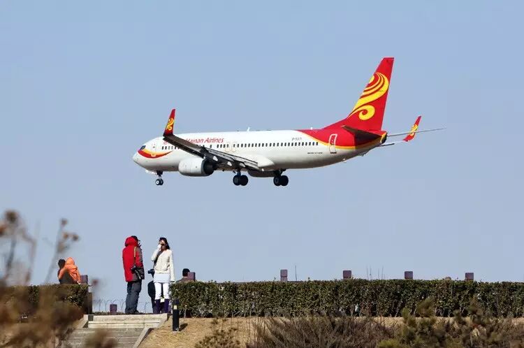 镜头里出现的飞机是中国国航波音B737-800客机,彩绘涂装。
