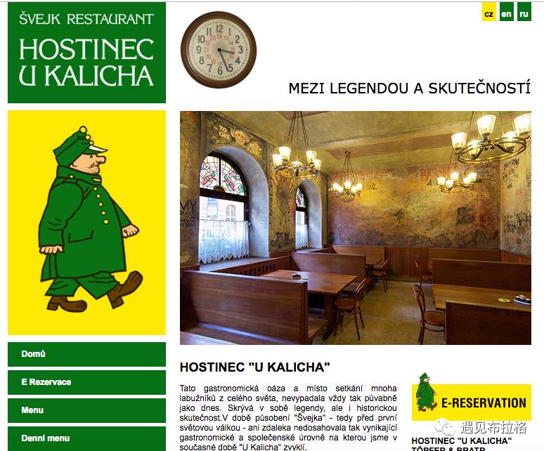 布拉格最正宗的一家叫“U Kalicha“,这家餐厅是哈谢克生前最喜欢的餐厅,所以他授权餐厅的经营者使用了帅克的形象。