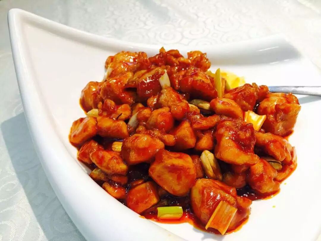 和其他餐厅的“宫保葱丁”不同,峨眉餐厅的宫保鸡丁可以称得上很实在。鸡丁切的很大粒且数量非常多,甜甜的口感中带着一丝辣和麻,但并不涩口,每一块肉上都均匀的包裹着酱汁,粒粒饱满。