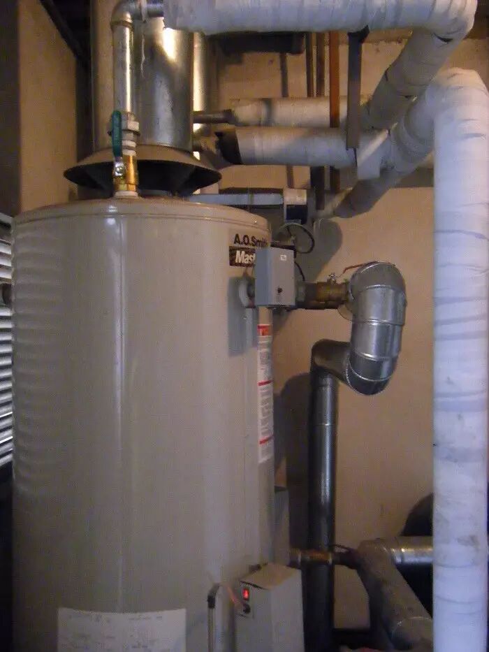 采用A.O.史密斯BTR-338型商用容积式燃气热水炉,BTR-338额定输入热负荷为99KW,热效率≥88%。