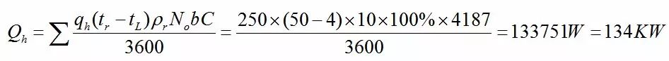 b) 定时供应热水的餐厅后厨设计小时耗热量应按下式计算: