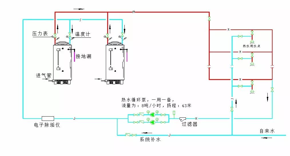 因此选用两台DW-1480和两台BTR-338即可满足瑞驰酒店的采暖及热水需求。