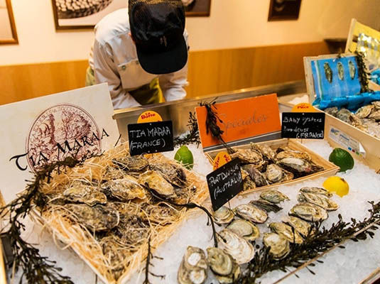莫尔顿的生蚝吧和海鲜是莫尔顿海鲜牛排坊在iapm引入的全新概念,为顾客呈献优选海鲜。八米长的生蚝吧台陈列着每日从美国、法国、澳大利亚及新西兰新鲜运抵上海滩的九种新鲜生蚝,以冰镇的方式供客人享用。