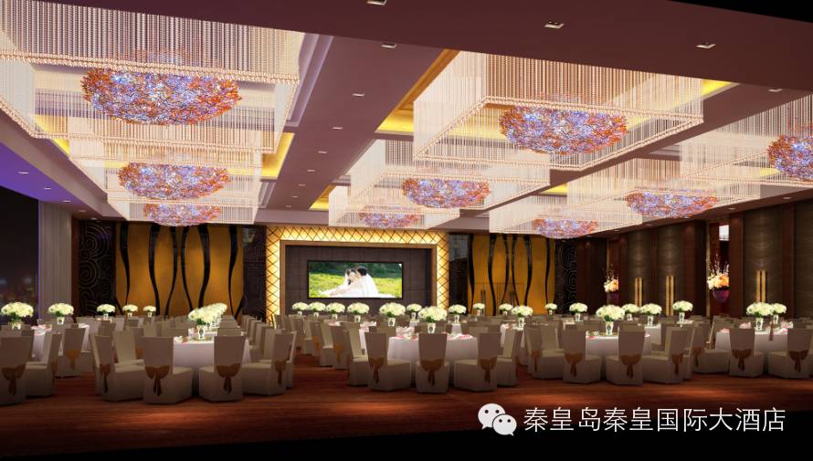 可观海的三层秦皇国际大宴会厅,配备先进的会议设施,是举办中型会议、答谢晚宴、浪漫婚礼的完美选择。