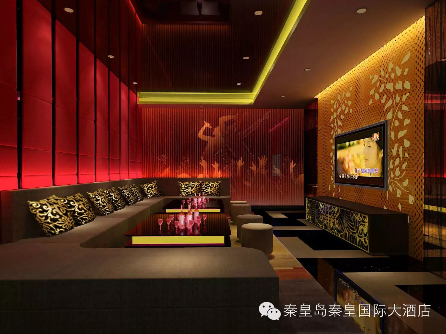 酒店拥有46间不同规模的KTV包间,采用最先进的影音设备。