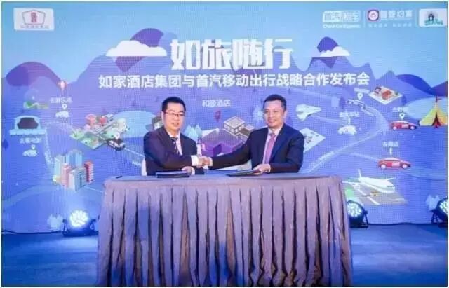 2016 年 8 月 11 日,首汽集团与如家酒店集团宣布结成战略联盟,共同打造移动时代“ 快乐出行+ ”的场景组合式交通解决方案。首汽集团旗下三大移动出行品牌:首汽租车、首汽约车、GoFun(新能源分时租赁)全部参与其中。此次战略合作发布会于当日在如家酒店集团旗下的和颐酒店中关村软件园店举行,主题为“如旅随行”,巧妙将“ 如家酒店集团 ”和“ 首汽移动出行 ”的名称暗合其中。