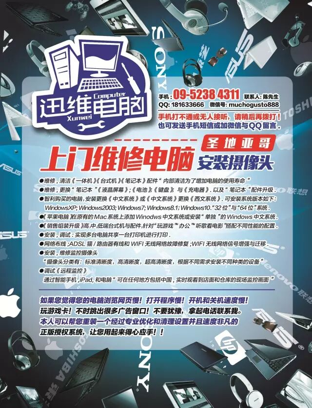 迅维电脑,圣地亚哥上门服务