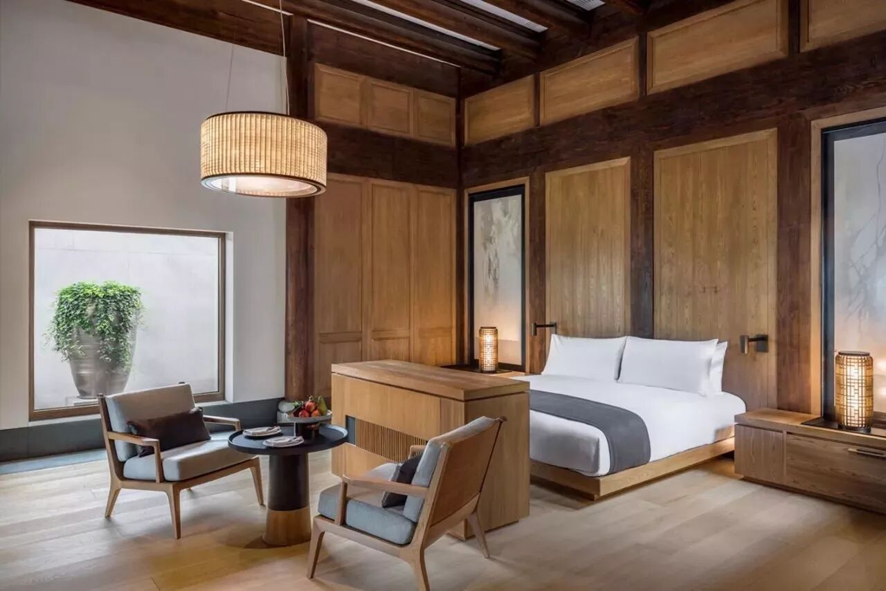 颐和园东门,隐藏在民居院落之中的颐和安缦并不显眼,此前一些院落已经历了上百年的历史,难觅昔日荣光。斑驳沧桑的深院古宅正是在安缦修复和保护的过程中重新焕发了新生。酒店采用传统中式设计,完美融合了现代居住的舒适感受和古典的装饰风格。