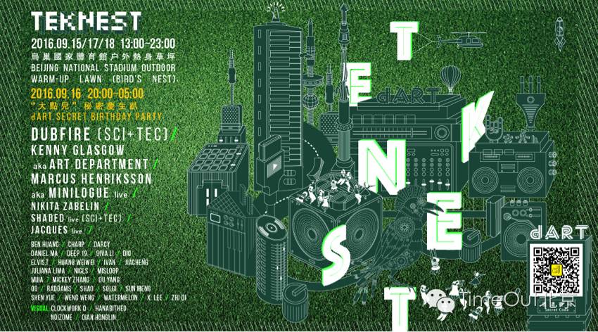 9月15、17、18日三天,dART将联手壹零科技节在鸟巢奥体中心足球训练场举办TEKNEST创艺电音节。