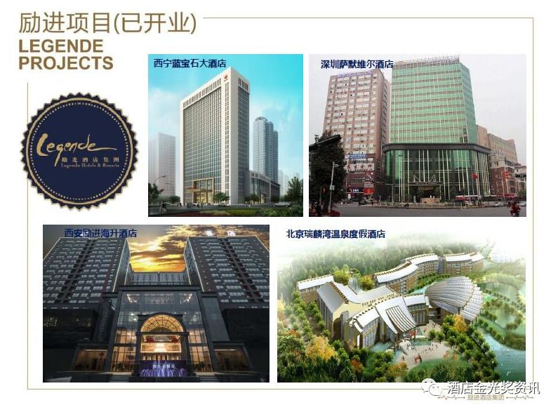 励进现已签订的酒店、服务式公寓及会所项目三十家,合作单位均为大型国企与知名民企。已开业营运项目 4 家,其余 26 家尚在前期规划或筹备开业中,分别位于中国的北京、广东、湖南、重庆、江苏、贵州、河北、山东、陕西、甘肃、青海、新疆等省市及澳大利亚的悉尼。